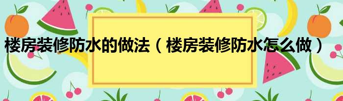 楼房装修防水的做法(楼房装修防水怎么做)