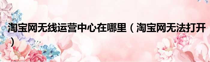 淘宝网无线运营中心在哪里(淘宝网无法打开)