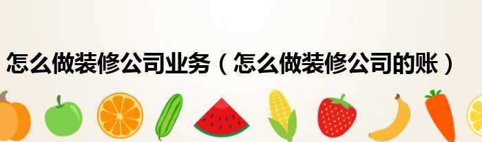 大家好,啊来为大家解答以上的问题。怎么做装修公司业务,怎么做装修公司的账这个很多人还不知道,现在让我们一起来看看吧!