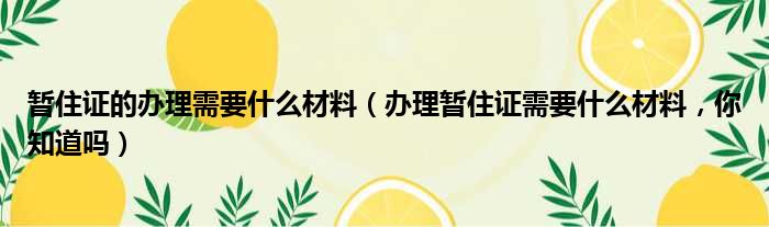 暂住证的办理需要什么材料(办理暂住证需要什么材料,你知道吗)