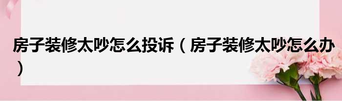 房子装修太吵怎么投诉(房子装修太吵怎么办)