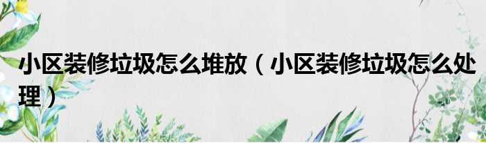 小区装修垃圾怎么堆放(小区装修垃圾怎么处理)
