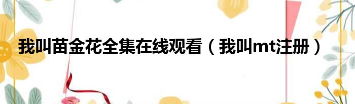 我叫苗金花全集在线观看(我叫mt注册)