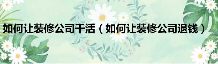 大家好,啊来为大家解答以上的问题。如何让装修公司干活,如何让装修公司退钱这个很多人还不知道,现在让我们一起来看看吧!