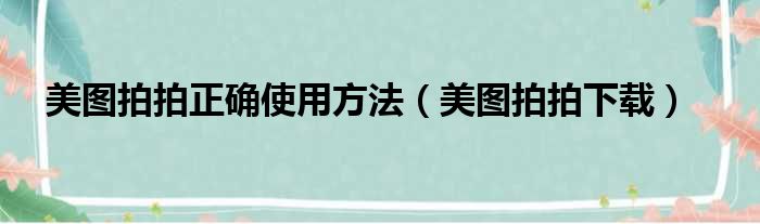 美图拍拍正确使用方法,美图拍拍下载很多人还不知道,今天乐天来为大家解答以上问题,现在让我们一起来看看吧!