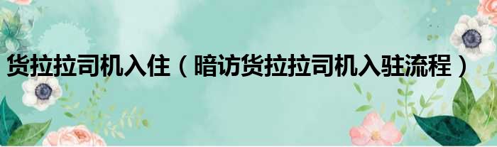 货拉拉司机入住(暗访货拉拉司机入驻流程)