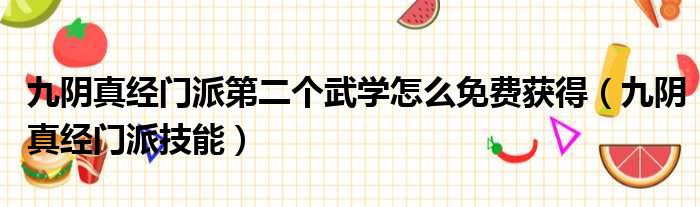 九阴真经门派第二个武学怎么免费获得(九阴真经门派技能)