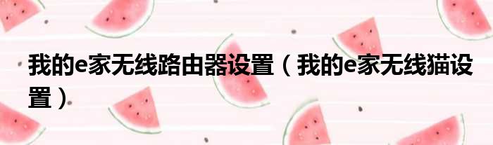 我的e家无线路由器设置,我的e家无线猫设置很多人还不知道,今天乐天来为大家解答以上问题,现在让我们一起来看看吧!