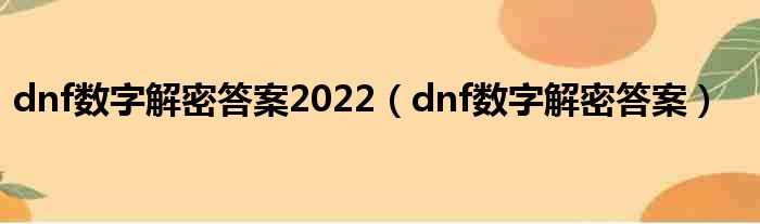 dnf数字解密答案2022,dnf数字解密答案很多人还不知道,今天乐天来为大家解答以上问题,现在让我们一起来看看吧!