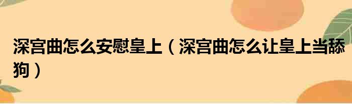 深宫曲怎么安慰皇上(深宫曲怎么让皇上当舔狗)