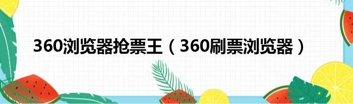 360浏览器抢票王,360刷票浏览器很多人还不知道,今天乐天来为大家解答以上问题,现在让我们一起来看看吧!