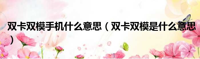 双卡双模手机什么意思(双卡双模是什么意思)