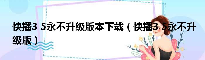 快播3 5永不升级版本下载(快播3 5永不升级版)