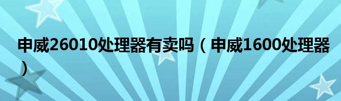申威26010处理器有卖吗,申威1600处理器很多人还不知道,今天乐天来为大家解答以上问题,现在让我们一起来看看吧!