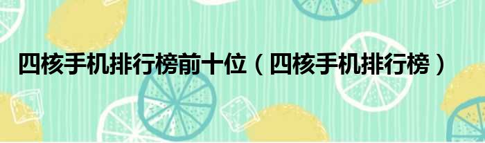 四核手机排行榜前十位,四核手机排行榜很多人还不知道,今天乐天来为大家解答以上问题,现在让我们一起来看看吧!