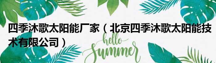 四季沐歌太阳能厂家(北京四季沐歌太阳能技术有限公司)