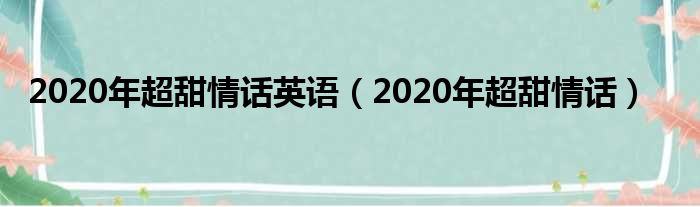 2020年超甜情话英语,2020年超甜情话很多人还不知道,今天乐天来为大家解答以上问题,现在让我们一起来看看吧!