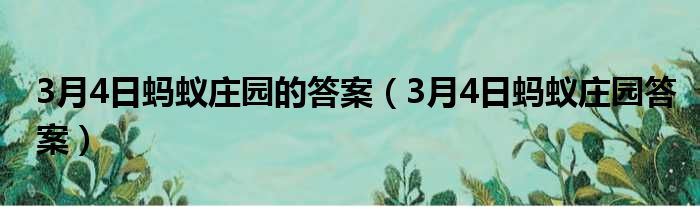 3月4日蚂蚁庄园的答案(3月4日蚂蚁庄园答案)