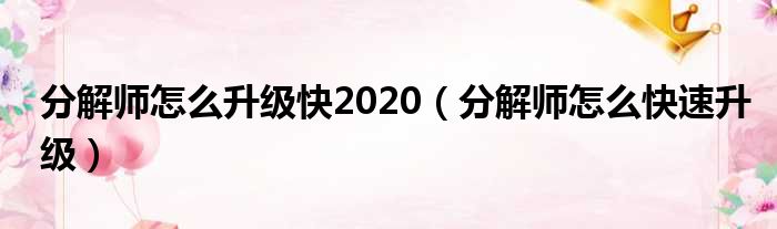 分解师怎么升级快2020,分解师怎么快速升级很多人还不知道,今天乐天来为大家解答以上问题,现在让我们一起来看看吧!