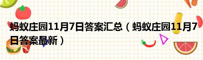 蚂蚁庄园11月7日答案汇总(蚂蚁庄园11月7日答案最新)