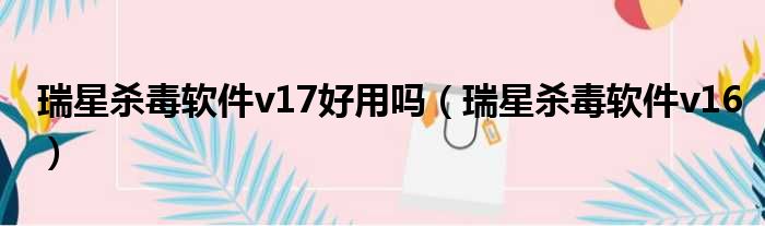 瑞星杀毒软件v17好用吗,瑞星杀毒软件v16很多人还不知道,今天乐天来为大家解答以上问题,现在让我们一起来看看吧!