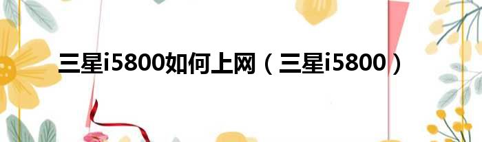 三星i5800如何上网,三星i5800很多人还不知道,今天乐天来为大家解答以上问题,现在让我们一起来看看吧!