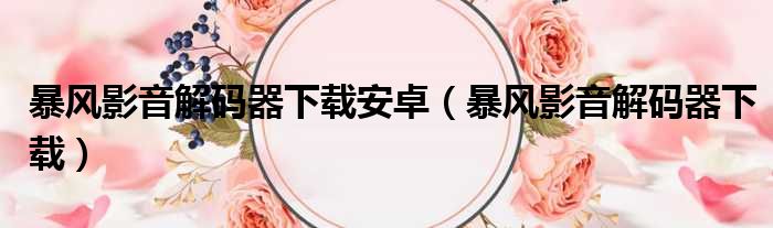 暴风影音解码器下载安卓(暴风影音解码器下载)