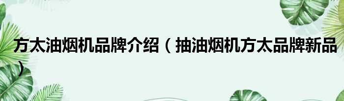 方太油烟机品牌介绍(抽油烟机方太品牌新品)