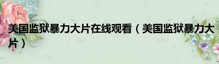 导读 大家好,今天小六子来为大家解答以下的问题,关于美国监狱暴力大片在线观看,美国监狱暴力大片这个很多人还不知道,现在让我们一起来看看吧