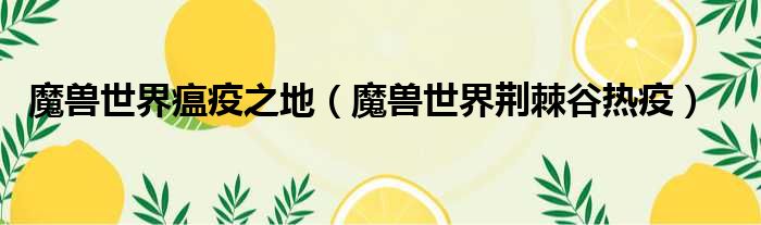 魔兽世界瘟疫之地(魔兽世界荆棘谷热疫)