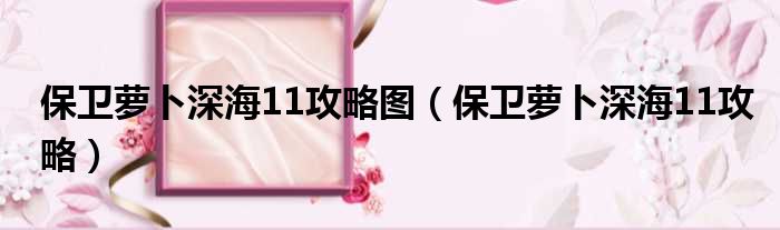 保卫萝卜深海11攻略图(保卫萝卜深海11攻略)