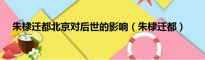 朱棣迁都北京对后世的影响(朱棣迁都)