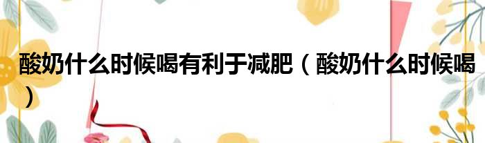 酸奶什么时候喝有利于减肥(酸奶什么时候喝)