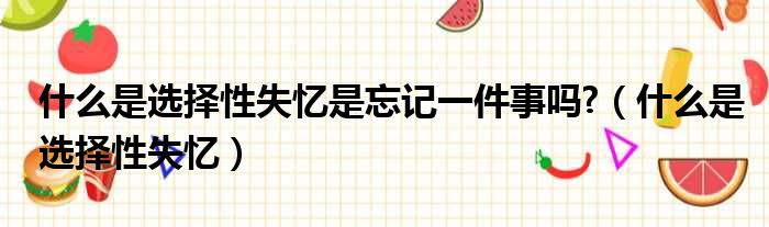 什么是选择性失忆是忘记一件事吗?(什么是选择性失忆)