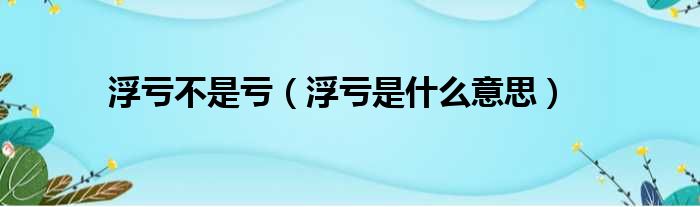 导读 大家好,今天小六子来为大家解答以下的问题,关于浮亏不是亏,浮亏是什么意思这个很多人还不知道,现在让我们一起来看看吧!1、就是表面上的