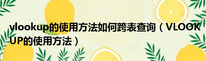vlookup的使用方法如何跨表查询(VLOOKUP的使用方法)