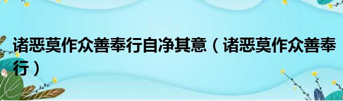 诸恶莫作众善奉行自净其意(诸恶莫作众善奉行)