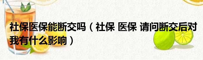 社保医保能断交吗(社保 医保 请问断交后对我有什么影响)