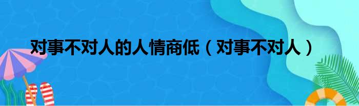 大家好,今天小六子来为大家解答以下的问题,关于对事不对人的人情商低,对事不对人这个很多人还不知道,现在让我们一起来看看吧!