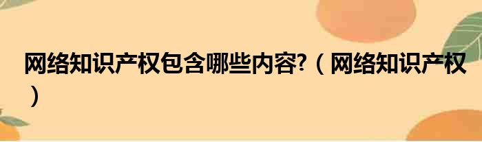导读 大家好,今天小六子来为大家解答以下的问题,关于网络知识产权包含哪些内容?,网络知识产权这个很多人还不知道,现在让我们一起来看看吧!1