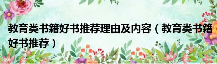 教育类书籍好书推荐理由及内容(教育类书籍好书推荐)
