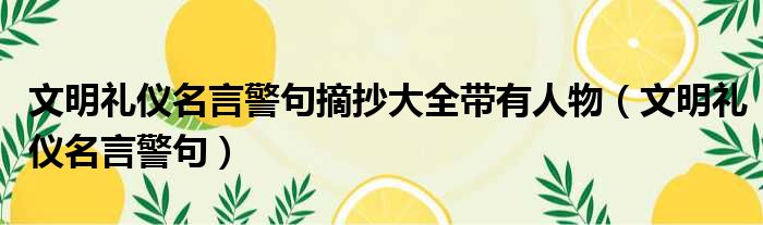 文明礼仪名言警句摘抄大全带有人物(文明礼仪名言警句)