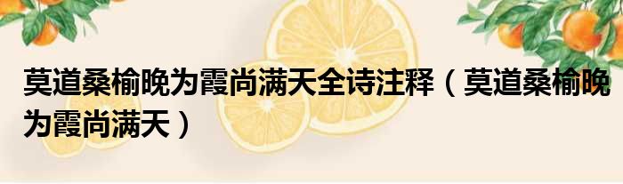 莫道桑榆晚为霞尚满天全诗注释(莫道桑榆晚为霞尚满天)