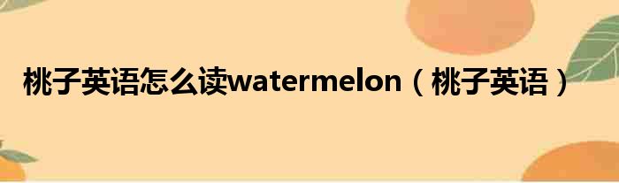 大家好,今天小六子来为大家解答以下的问题,关于桃子英语怎么读watermelon,桃子英语这个很多人还不知道,现在让我们一起来看看吧!