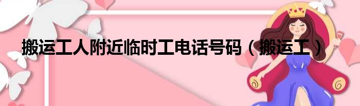 导读 大家好,今天小六子来为大家解答以下的问题,关于搬运工人附近临时工电话号码,搬运工这个很多人还不知道,现在让我们一起来看看吧!1、