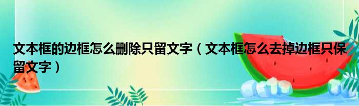 文本框的边框怎么删除只留文字(文本框怎么去掉边框只保留文字)