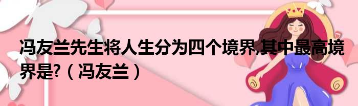 导读 大家好,今天小六子来为大家解答以下的问题,关于冯友兰先生将人生分为四个境界,其中最高境界是?,冯友兰这个很多人还不知道,现在让我们一