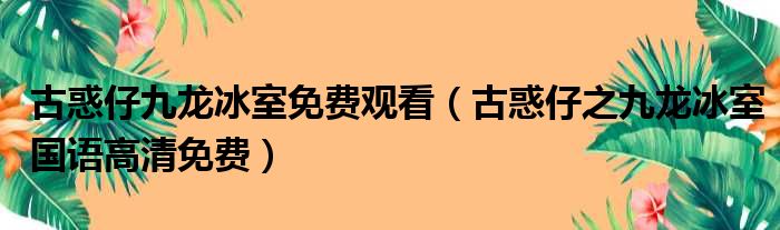 导读 大家好,今天小六子来为大家解答以下的问题,关于古惑仔九龙冰室免费观看,古惑仔之九龙冰室国语高清免费这个很多人还不知道,现在让我们一