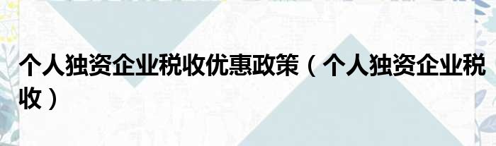 个人独资企业税收优惠政策(个人独资企业税收)