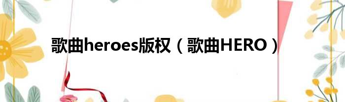 大家好,今天小六子来为大家解答以下的问题,关于歌曲heroes版权,歌曲HERO这个很多人还不知道,现在让我们一起来看看吧!